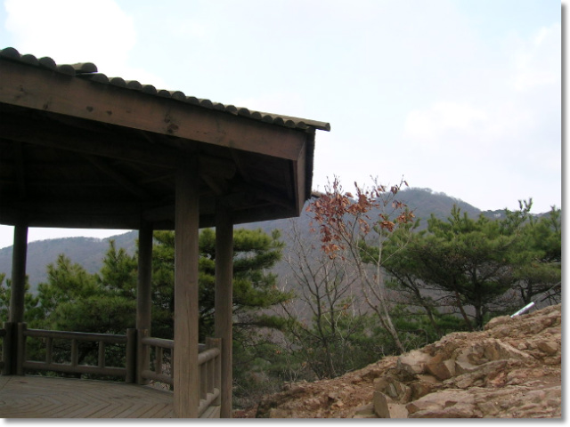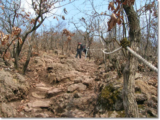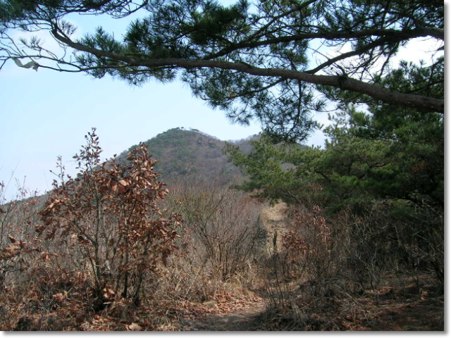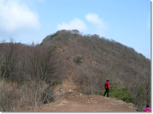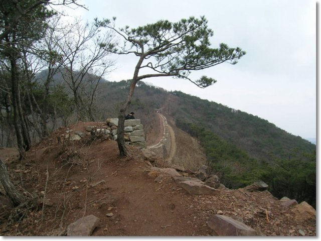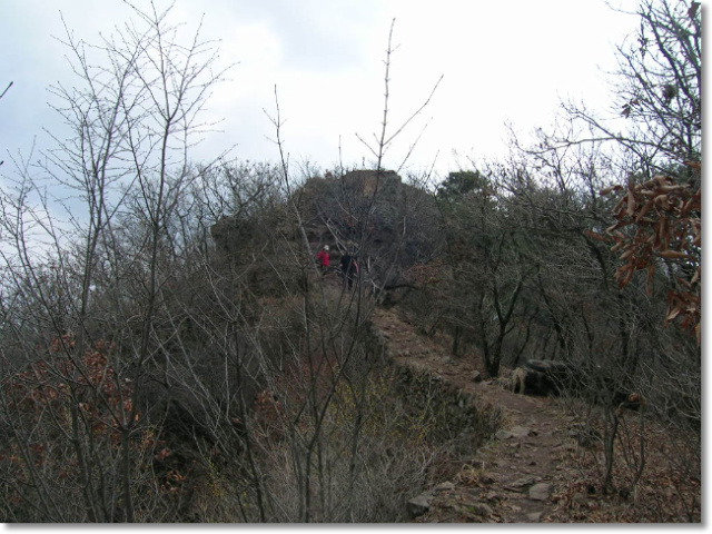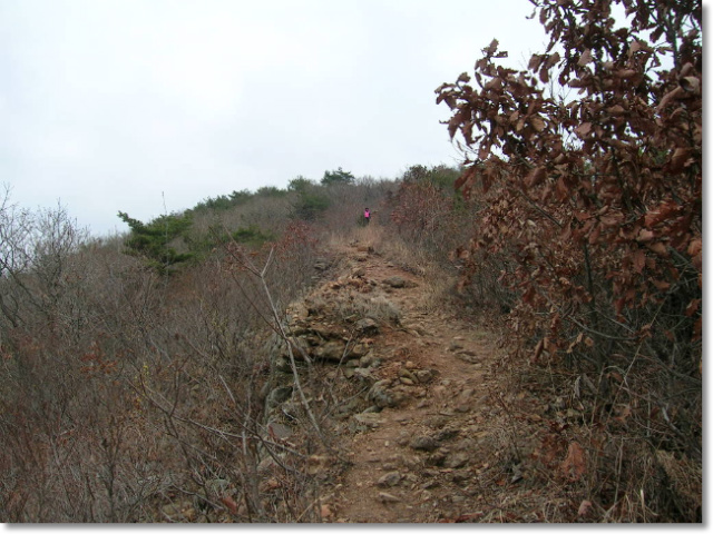 기온이 제법 올라가기 시작하여 중턱에서 겉옷은 벗었습니다. 멀리 산성의 동북쪽 끝머리가 보입니다