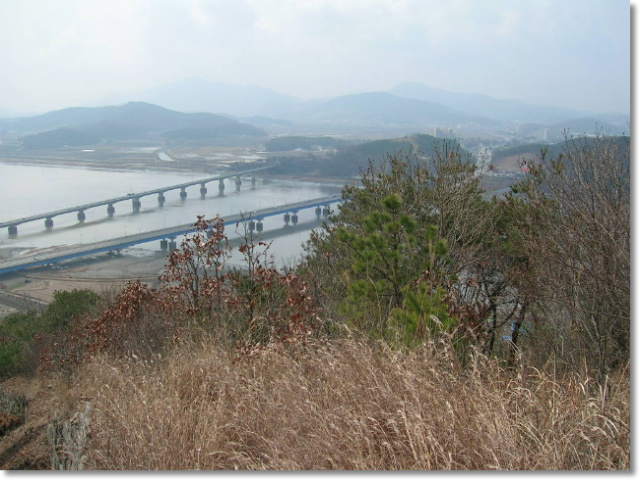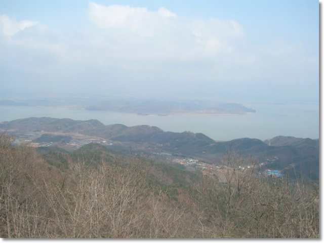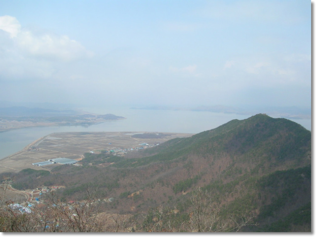동북쪽 끝봉우리에 올랐습니다 황해와 조강이 서로 악수를 하고 있는 듯...