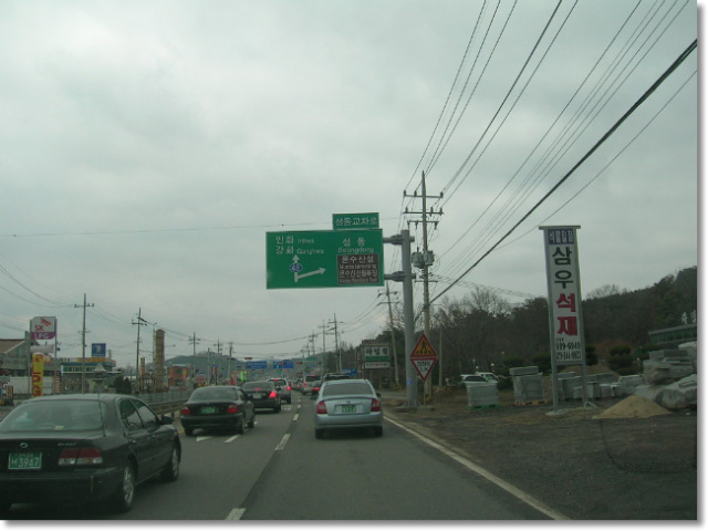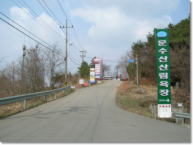 문수산 산림욕장 입구 모란각에서 100m정도 들어 가면 옛날엔 문수산성 내부였던 곳에 운동시설을 비롯한 공원시설을 조성하여 산림욕을 즐길수 있도록 가꾸어 놨습니다만 나중 내려 올때 소개해 드리겠습니다. 여기 산림욕장으로 들어 가지 않습니다. 산림욕장 입구 저 앞쪽에 삼거리가 보이시죠? 그 삼거리에서 좌측, 즉 해안도로를 타고 2~300m를 가면....