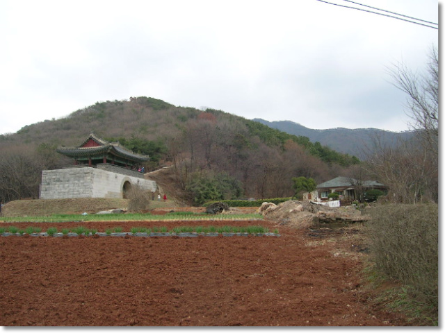 저 멀리 오늘 오전에 차를 몰고 들어 올때의 '모란각'이 보입니다