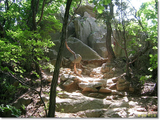 아까 팔봉능선의 1봉과 2봉 사이의 "불성사"로 가는 길이었습니다