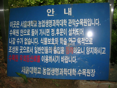 안양유원지가 서울대학교 수목원으로 거듭 태어나 일반인의 출입이 제한되어