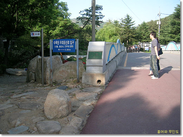등산로 출구(입구)로 나와 뒤돌아 보면 이렇게 다리 건너 좌측으로 등산로가 있으며