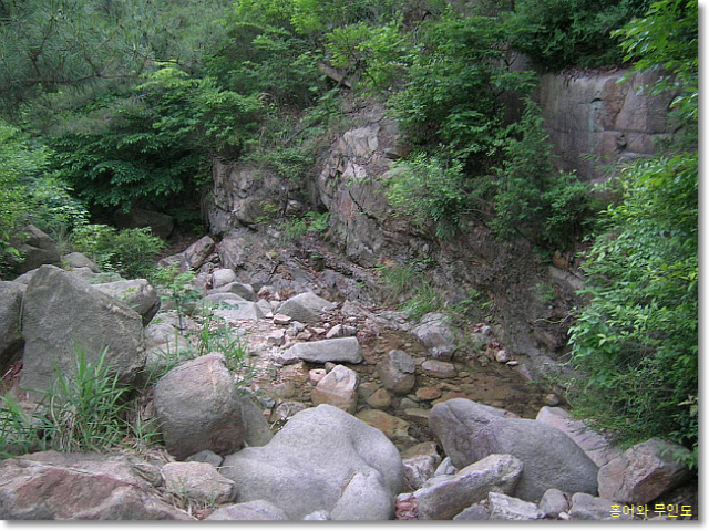 학바위능선과 팔봉능선 사이의 계곡에서 발원하여 내려 오는 물이 이 앞으로 흐르고있는데