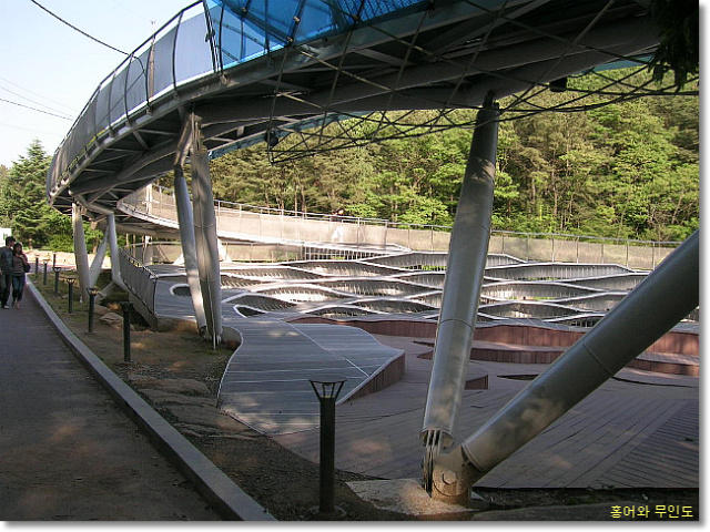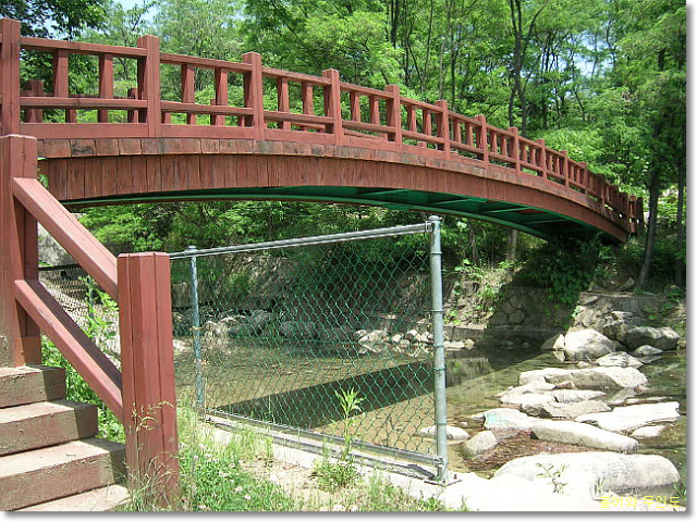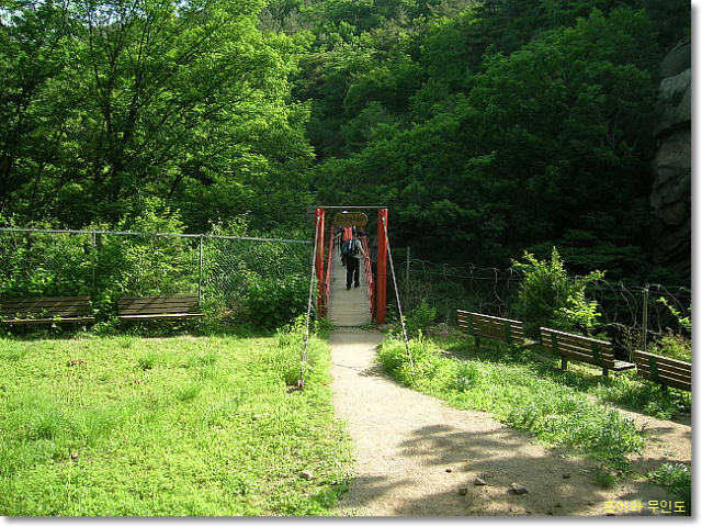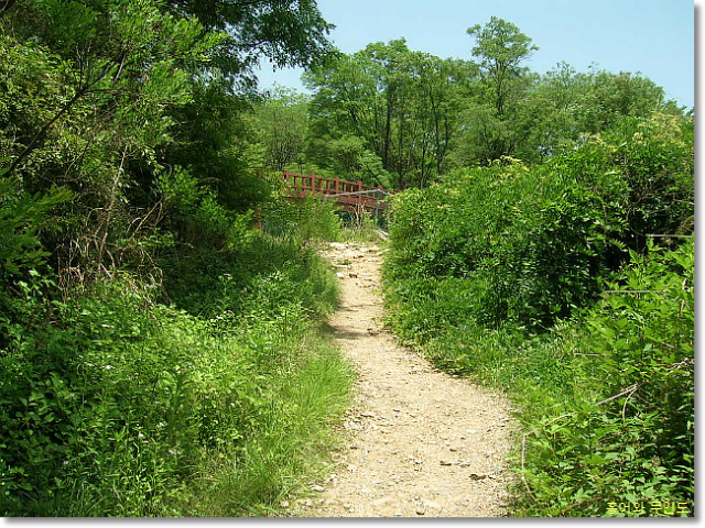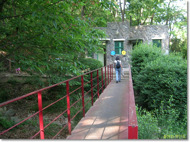 감시초소에서 오른쪽으로 조금 오르니 붉은색의 다리가 나왔습니다