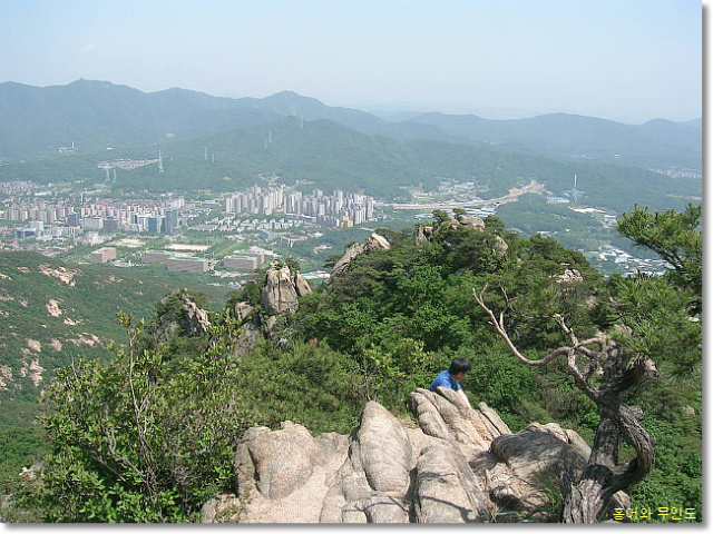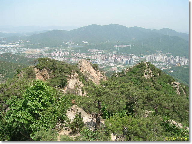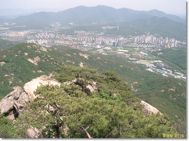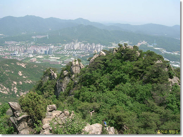 제7봉에서 바라본 안양 유원지 계곡과 멀리 안양이 보입니다