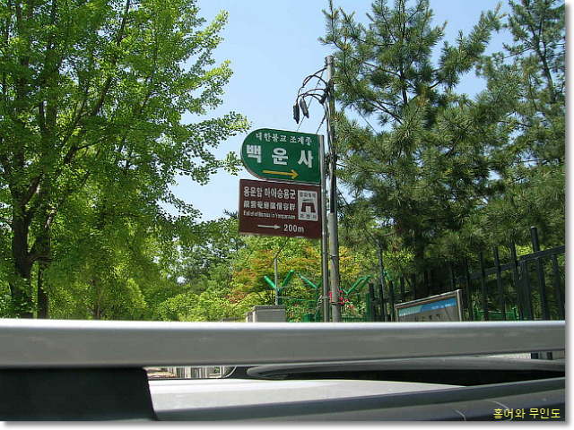 기술표준원 담 끝에 백운사 입구 표지판이 있습니다