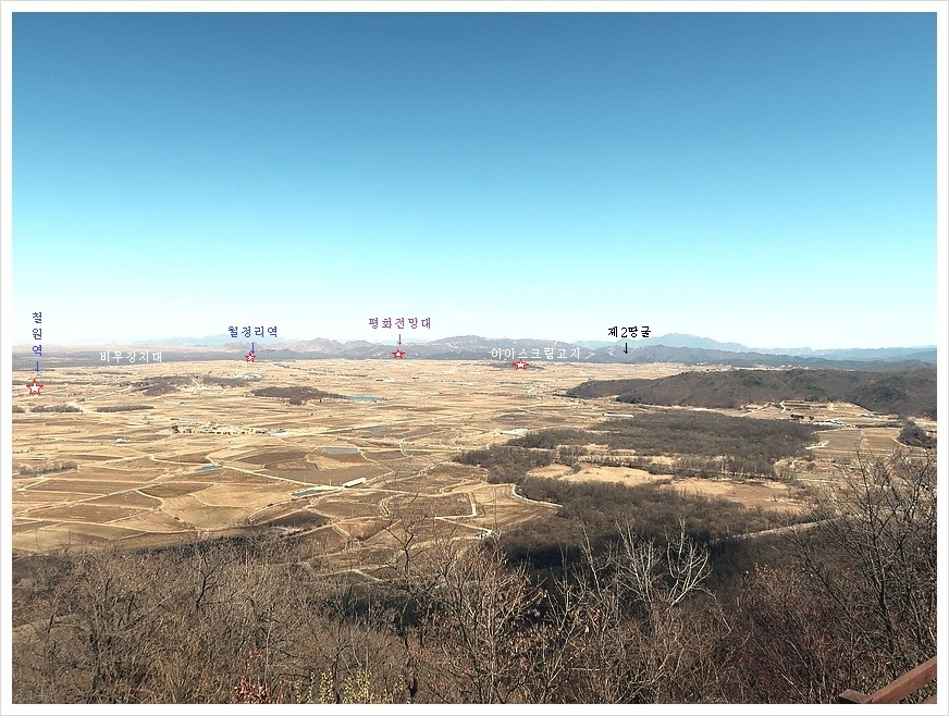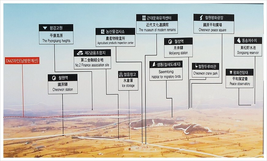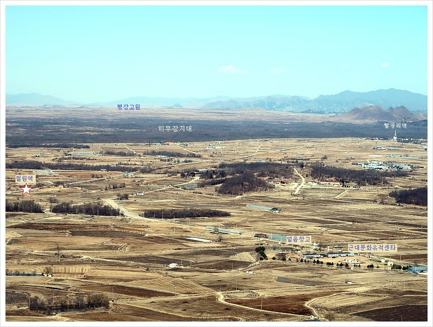 <휴전선>을 기준으로 북쪽이 <평강고원>이고 남쪽이 <철원평야>이죠. 무척 가까이 있죠?