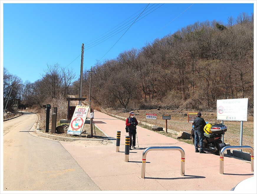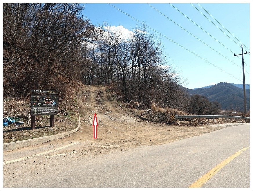 <새우젓고개>에 있는 "한여울길 4코스 입구"에 도착하여 <동주산성>으로 올라 갑니다.
