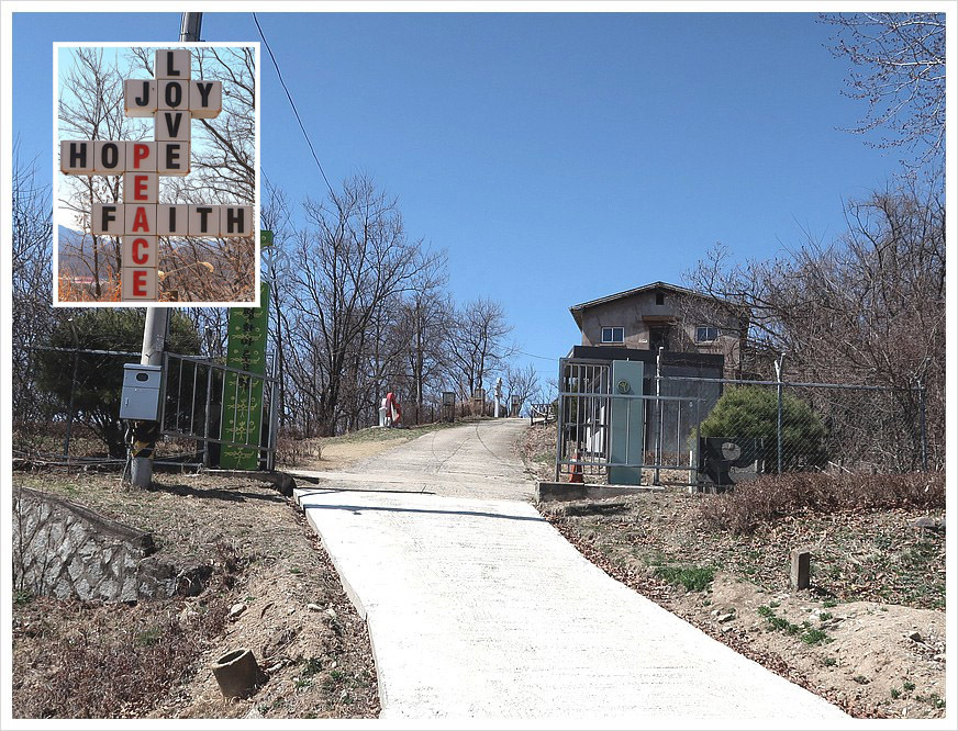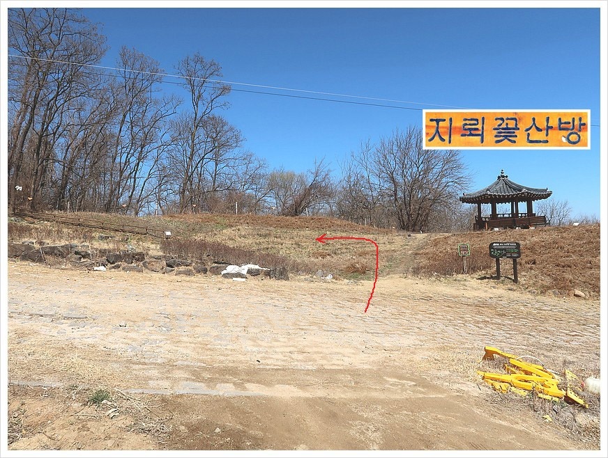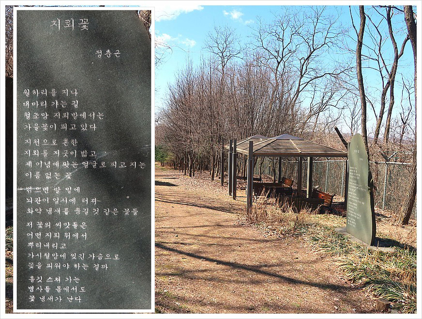 <소이산 둘레길> 입구 우측에 <지뢰꽃산방>이라는 정자를 만나는데