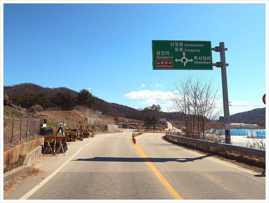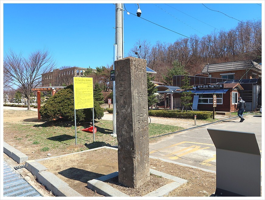 <조동당사 주차장>을 지나면 <철원군>이 설치한 "도로원표"가 있습니다.