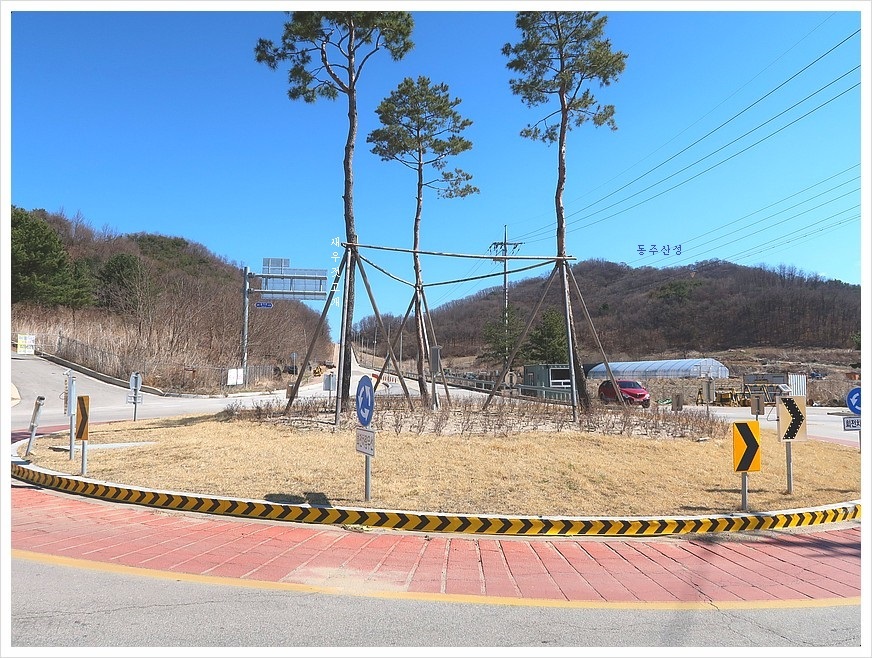 좌회전하면 정면에 <새우젓고개>가 보이며 우측엔 <동주산성>도 조망됩니다.