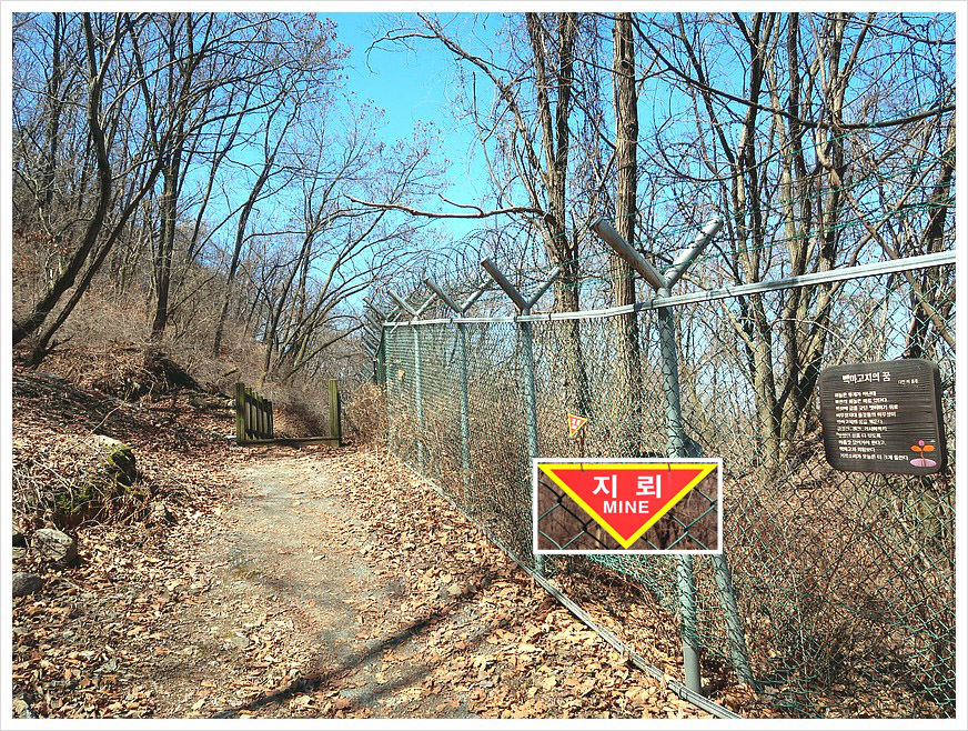 <지뢰꽃길>은 철조망을 따라 이어지는데, 예전 <미군부대>와 <한국군대>가 주둔 했을때