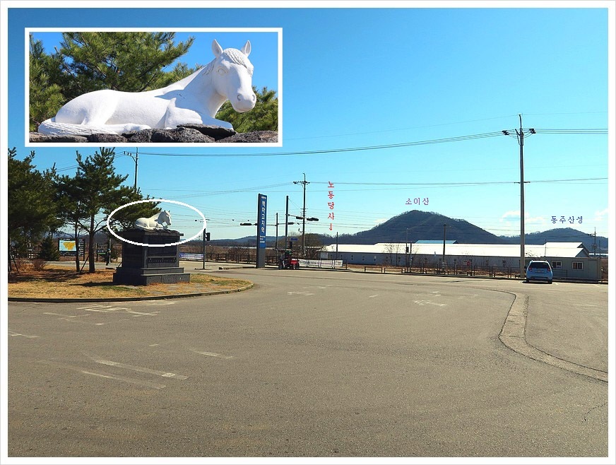 <백마고지역 광장>에는 "백마 白馬" 한마리가 여유로운 포즈를 취하고 있고