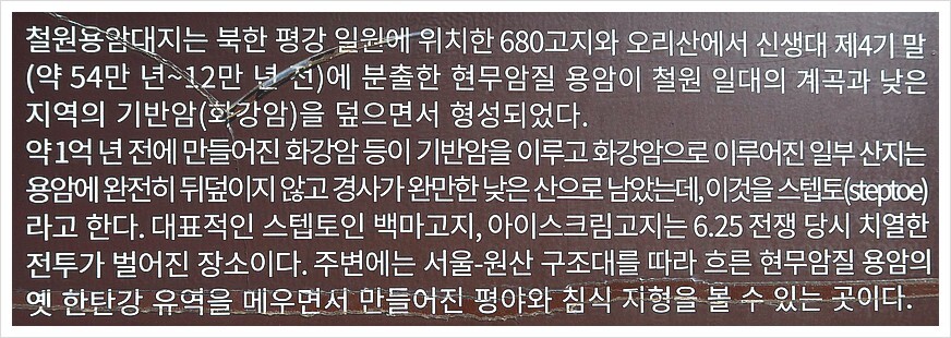여기 클릭하여 "[철원DMZ평화의길] 백마고지-화살머리고지 방문기"를 참고하세요.