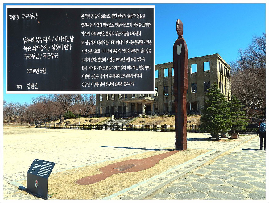 <노동당사> 앞에는 조형물이 하나 있는데 "두근두근"이라는 작품이더군요.