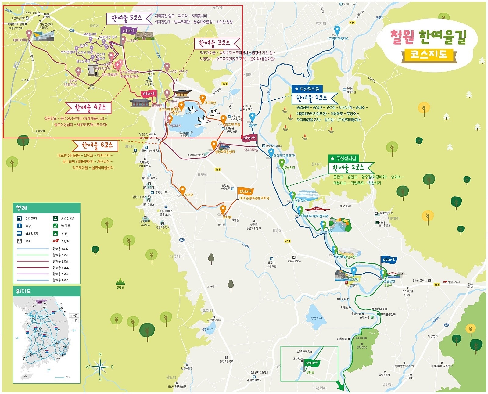 일반인들에겐 잘 알려지지 않은 "철원한여울길 종합안내도"를 보고 진행하면 편리 합니다.