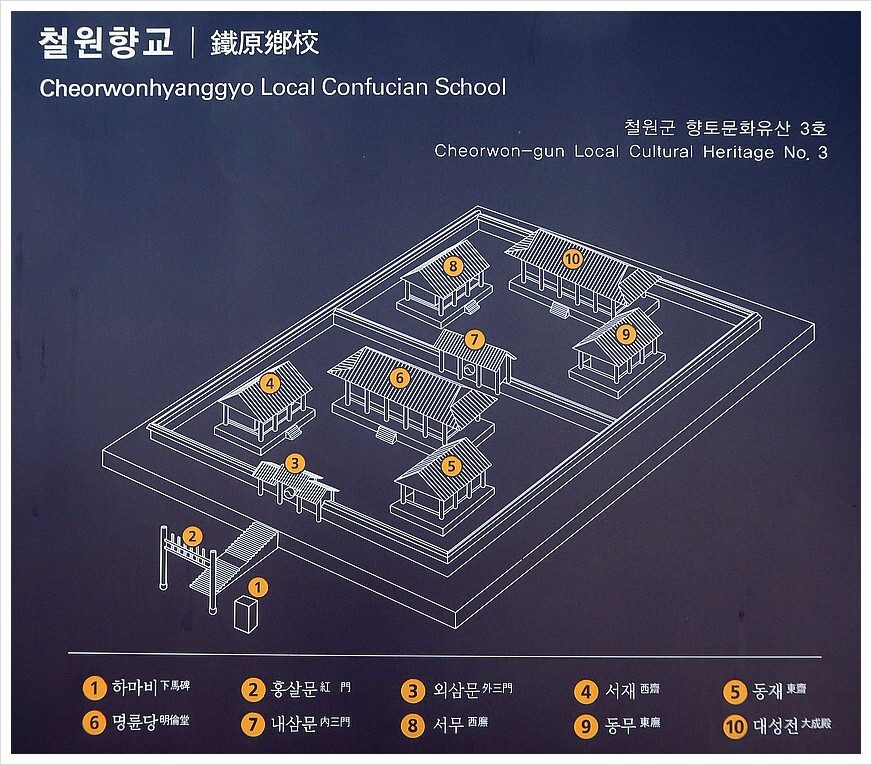<동주산성>이 있었다는 산능선을 한시간 정도 진행하면 <철원향교>가 나타납니다.