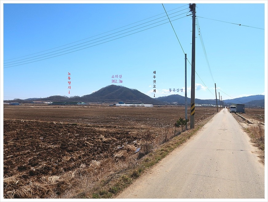 정면으로는 잠시후 오를 <소이산>과 <동주산성>이 조망되는데
