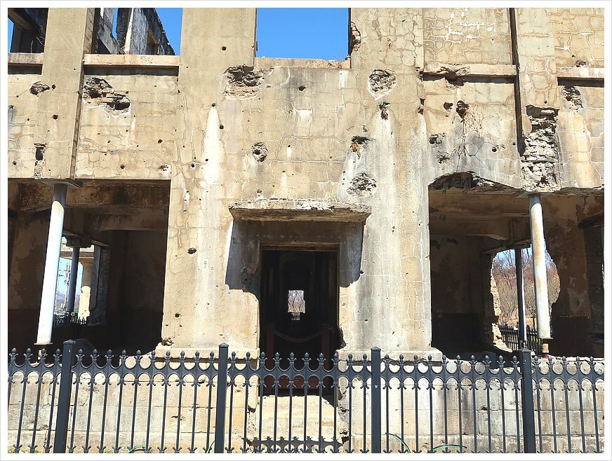 <소이산> 정상에서 조망하는 <노동당사>인데, 옛날엔 주변에 경찰서, 도립병원, 농산물검사소,
