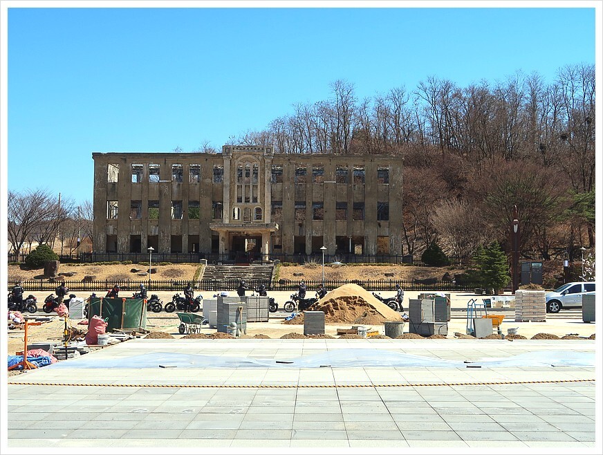 <새우젓고개>에서 내려가면 <노동당사>가 보이기 시작하는데 당사 앞에는 온통 공사판입니다.