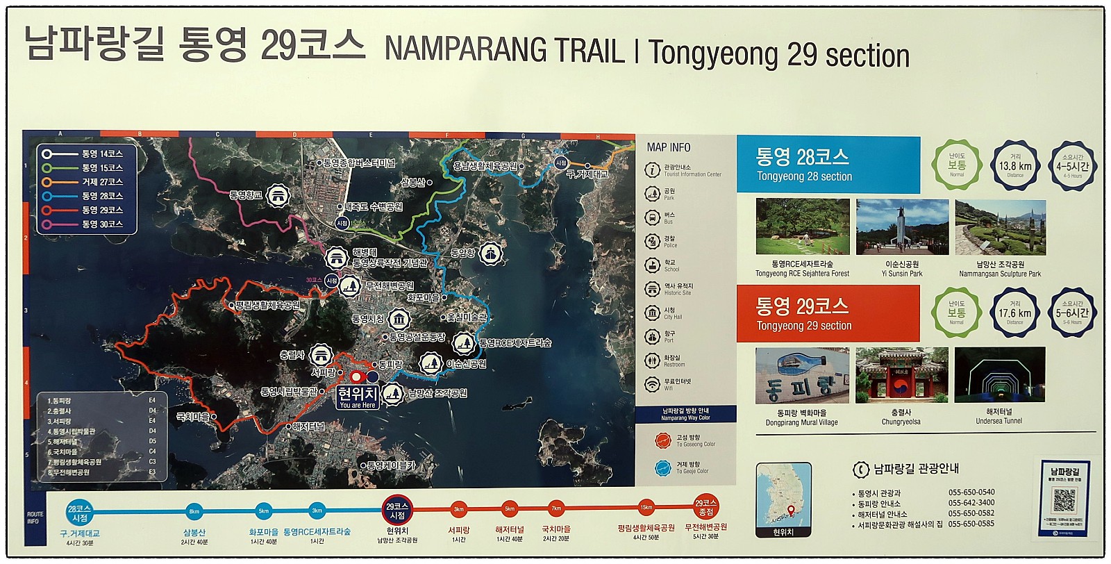 ['29코스 안내도'] ★ 사진을 클릭하면 확대 됨 ★ <남파랑길 29코스 안내도>가 <김춘수 시비> 뒤에 설치되 있습니다. <28코스 종점>이지만 오늘은 <29코스 일부>를 추가로 더 진행합니다.
