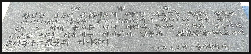 <황간현감 이운영>이라는 분이 1780년경에 세웠단다.