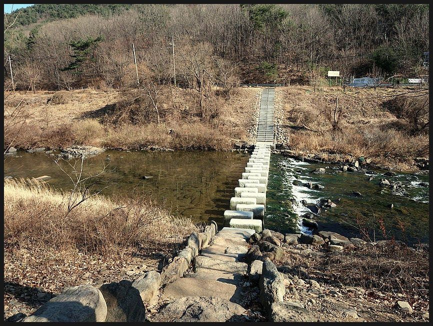 <루나마켓>에서 19여분 진행하면 징검다리를 만난다.