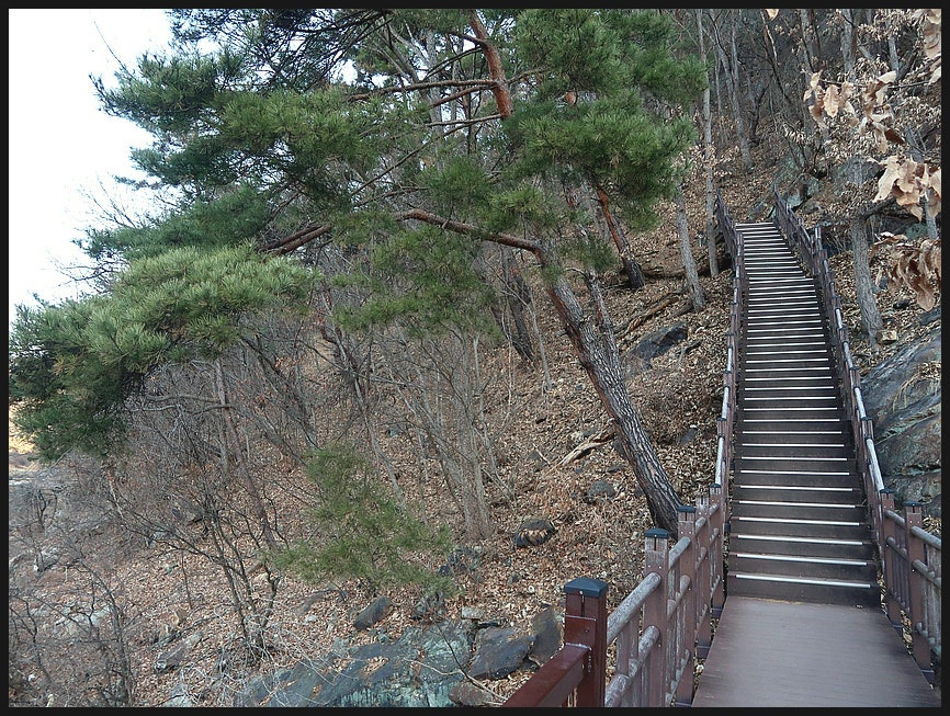 <원천교>에서 30여분 계단 오르내림을 진행해서...