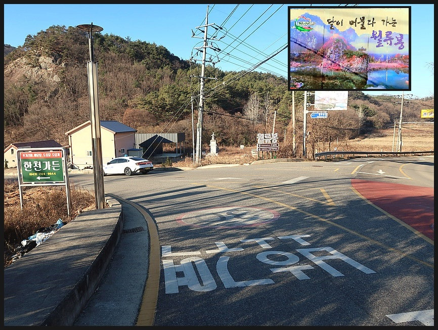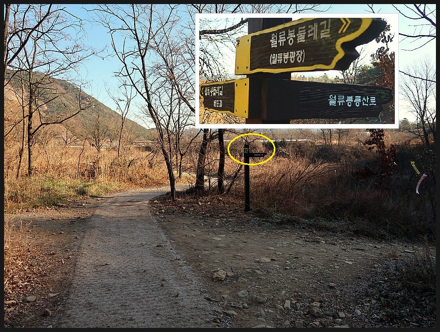 <송시열유허비>를 지나면 <월류봉 등산로 갈림길>을 지나게 되는데