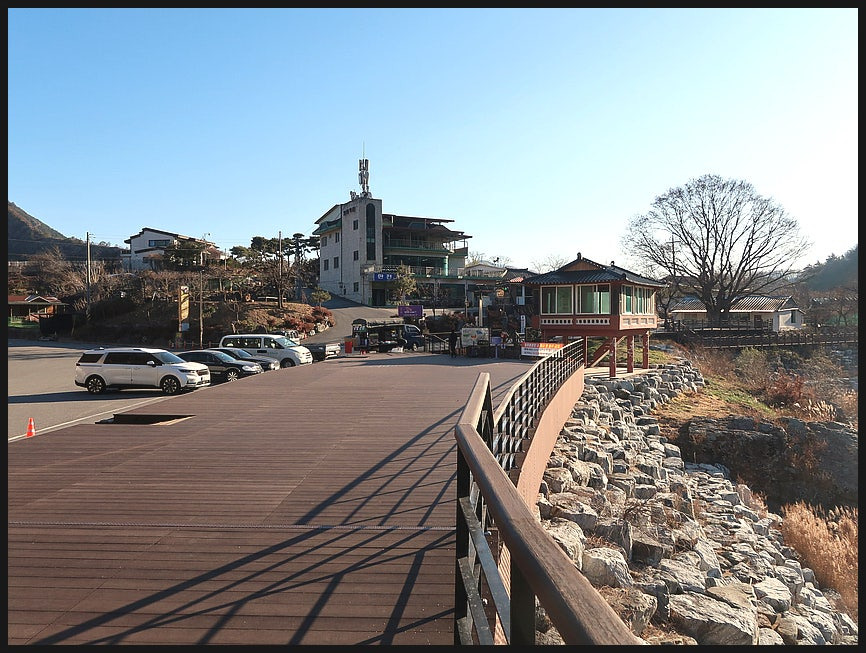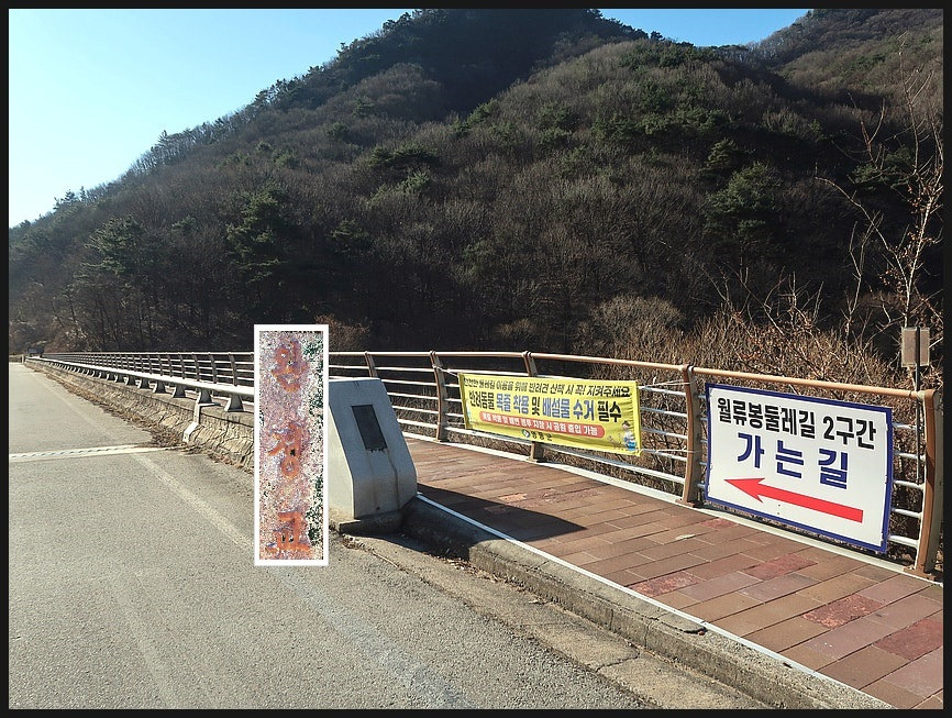 <회도석>을 지나면 <원촌교>를 만나는데, <월류봉 광장>을 다녀와 우측으로 <월류봉둘레길>을 이어 간다.