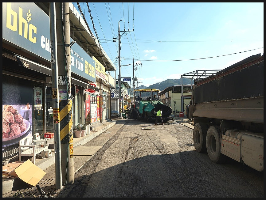 <황간 중심지>는 도로포장공사가 한창 진행중이다.