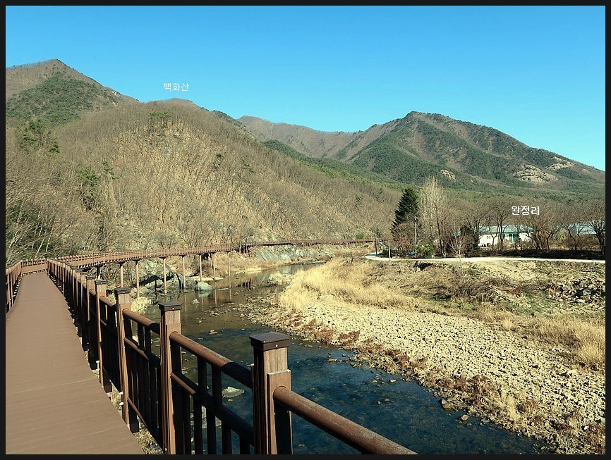 유명한 <백화산> 아래에 있다고 붙여진 <백화교>를 만나는데 둘레길은 이 다리를 건너지 않고 직진한다.