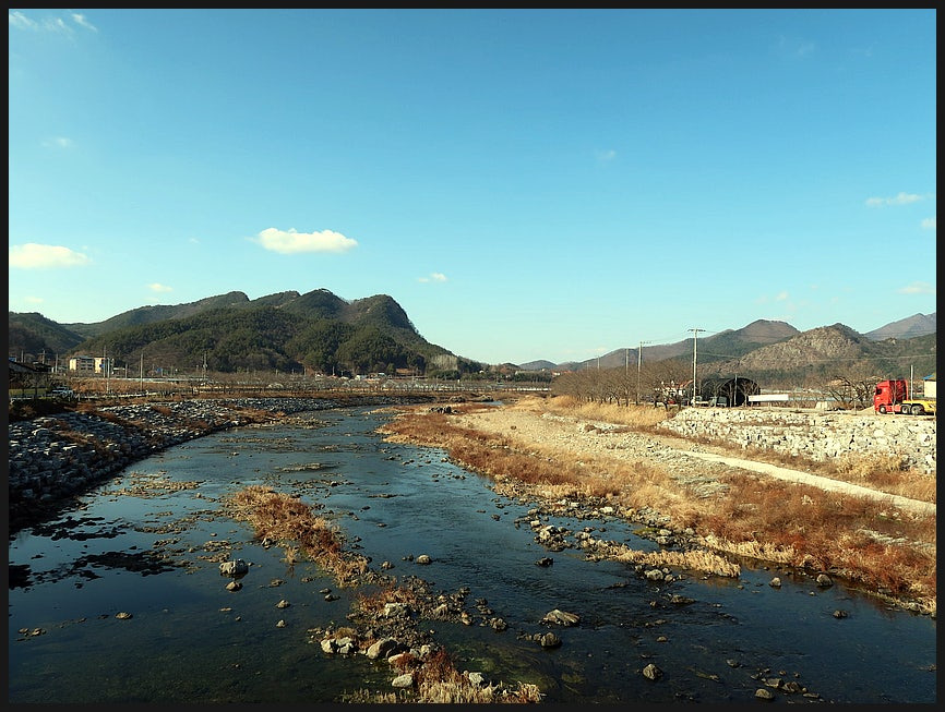 <민주지산>과 <삼도봉>등에서 흘러 내려 오는 <초강천>이 <황간>의 중심부를 흘러 가는데