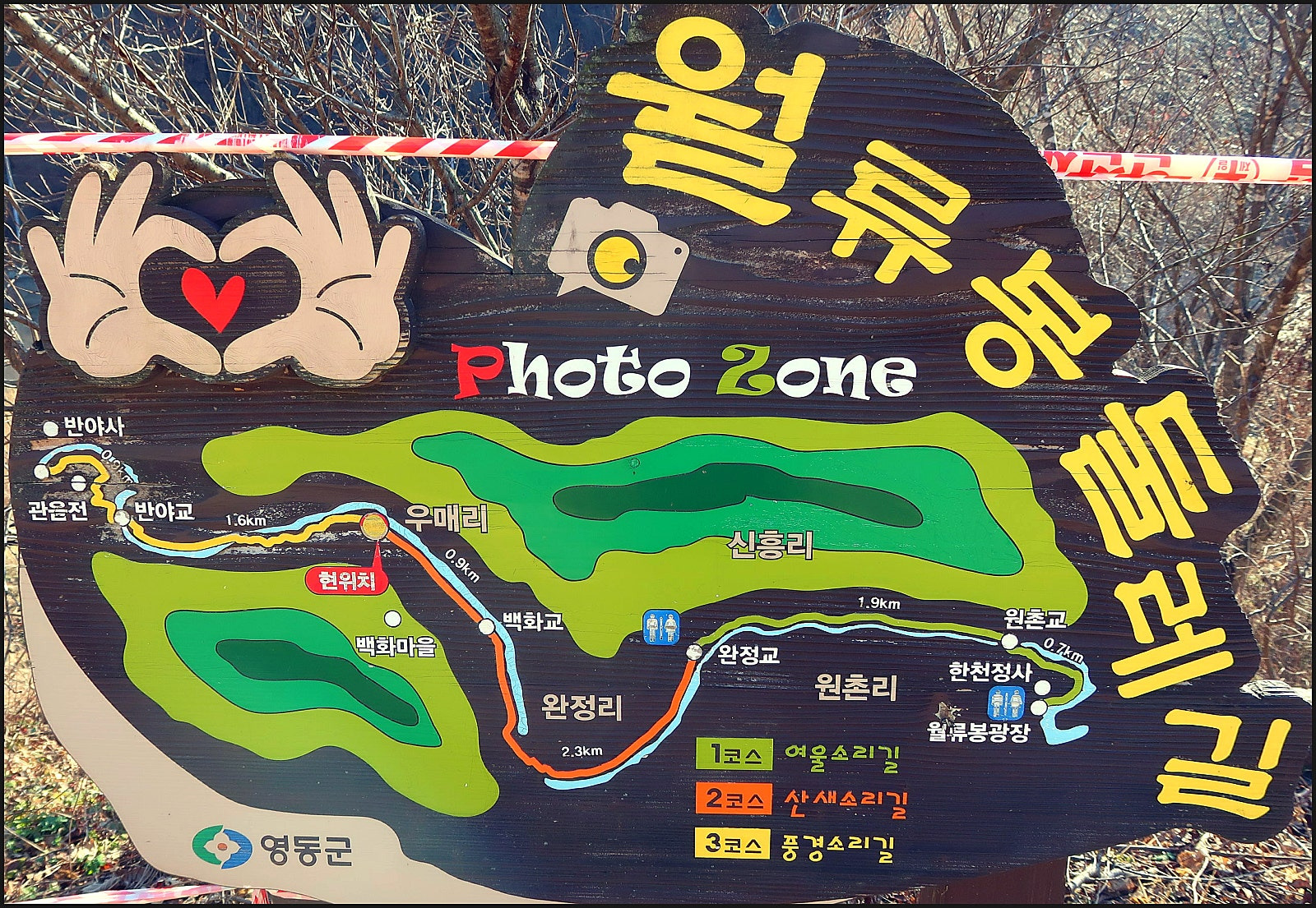 황간역-월류봉광장-1코스 여울소리길-2코스 산새소리길-3코스 풍경소리길-반야사