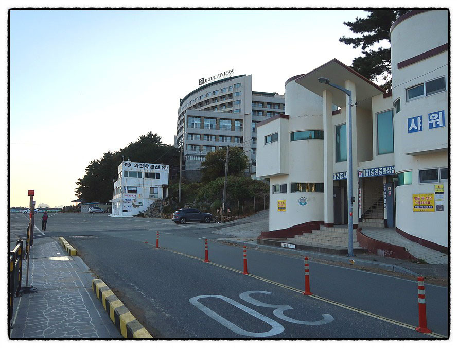 ['리베라호텔' 앞] 4:18 <와현해수욕장>의 샤워시설과 <리베라호텔>을 지나 <와현유람선 선착장>으로 가서 뒤돌아 보면...