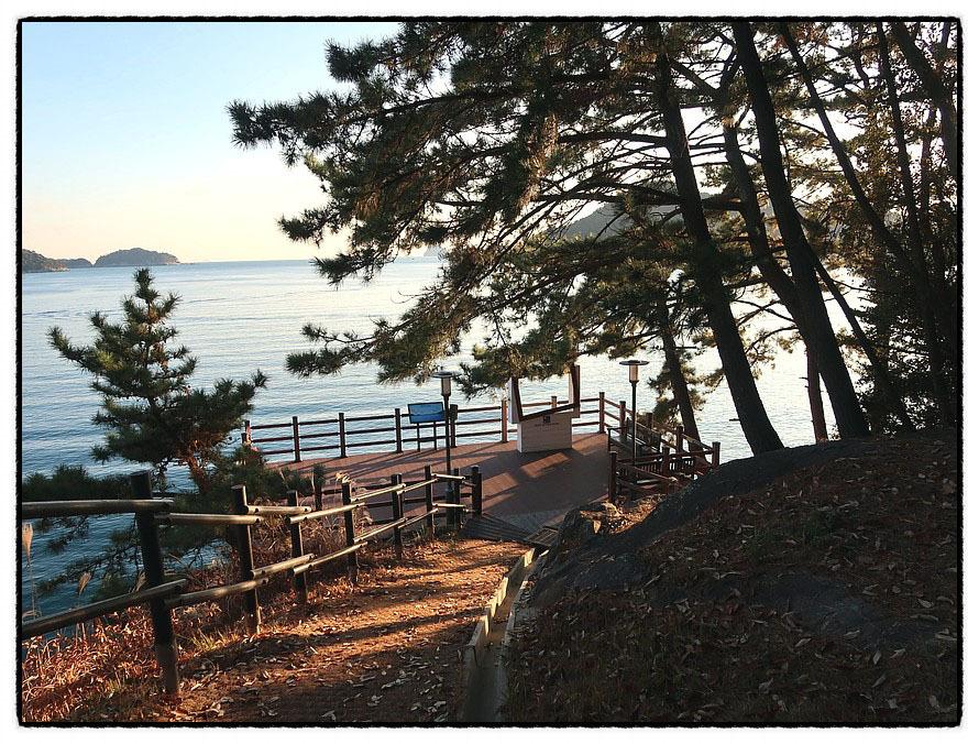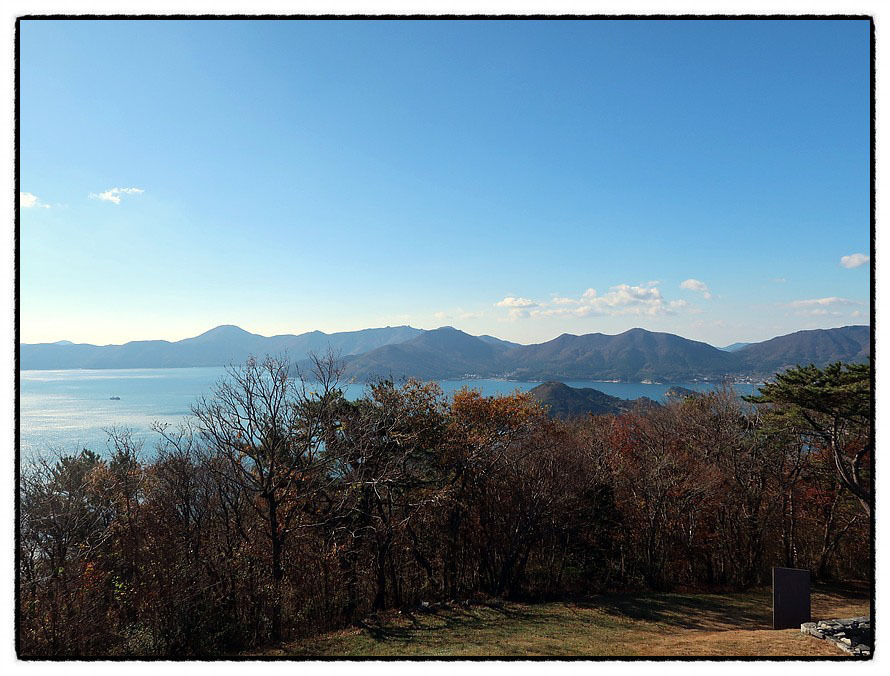 [조망 2] 동쪽으로 고개를 돌리면 "서이말"이 조금 보이는데, 저곳에 "서이말등대"가 있습니다. "서이말 鼠耳末" <쥐 서鼠> <귀 이耳> <끝 말末>로 이루어진 <서이말>은 글자 그대로 "쥐의 귀 끝"이라는 뜻인데 동쪽으로 삐쭉 내민 반도의 끝이 <쥐의 귀> 모양이라 붙여진 이름이겠죠. <거제도>에서 <일본 대마도>가 가장 가까운 곳이랍니다. 그래서 <서이말등대>는 <일본 대마도>까지 영향을 미치는 중요한 등대였다고 합니다. 현재는 등대 대신에 <서이말 항로표지관리소>가 설치되어 운영되고 있답니다.