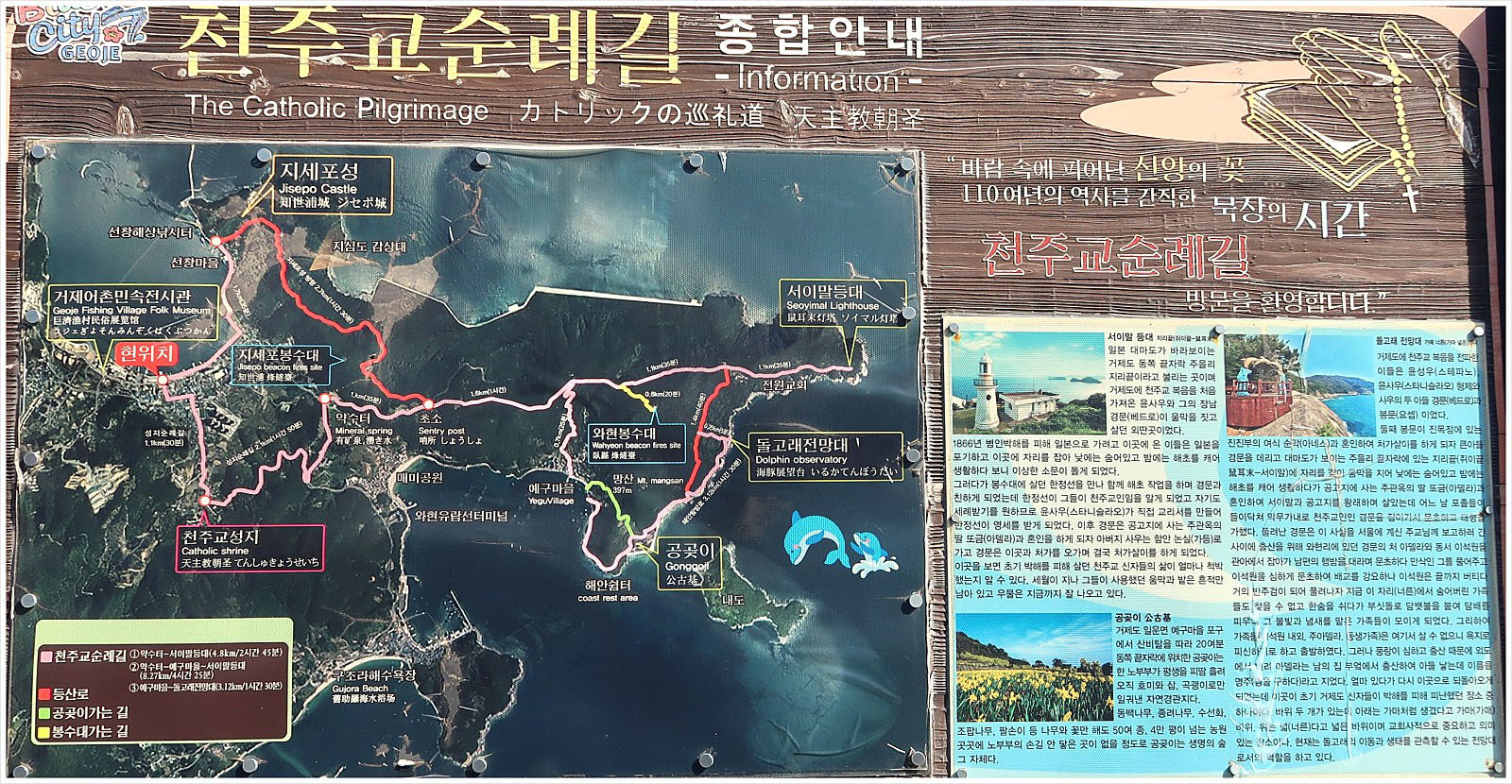 ['천주교순례길' 안내도] ★ 사진을 클릭하면 크게 확대 됩니다 ★ <지세포항> 앞에는 "천주교순례길 종합안내도"가 설치되 있더군요. <남파랑길 21코스>는 <천주교순례길>과 함께 가는 구간이 많았습니다. 자세한 내용은 사진을 클릭하여 확대되는 사진을 참고 합니다.
