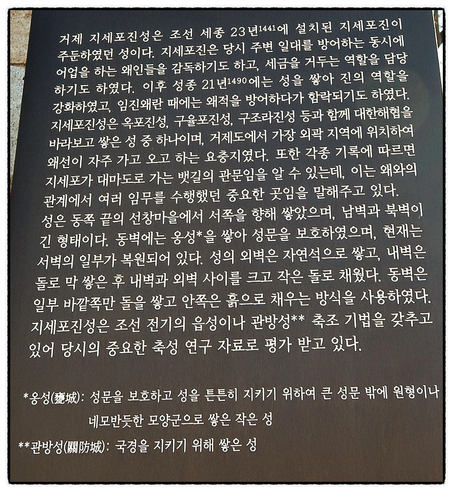 ['지세포항' 조망] "지세포 知世浦"가 전체적으로 조망됩니다. <지세포>에 대한 지명의 유래는 똑부러지게 알려진게 없더군요. <지세포>에 대한 <파란문>의 생각을 언급하면.... <알 知>와 <세상 世>를 보면 어느 정도 유추 해석 할수 있겠습니다. 이 지역은 일본과 가까운 거리에 있고 태풍등 풍랑을 피할수 있는 호수같은 지형의 포구여서 軍船과 화물선, 그리고 어선들의 출입이 많아 타 세상 사람들과의 접촉이 많을수 밖에 없었을 것입니다. 그래서 "더 넓은 세상을 알게 해준다"라는 의미로 쓰여 진게 아닌지...믿거나 말거나...ㅎ