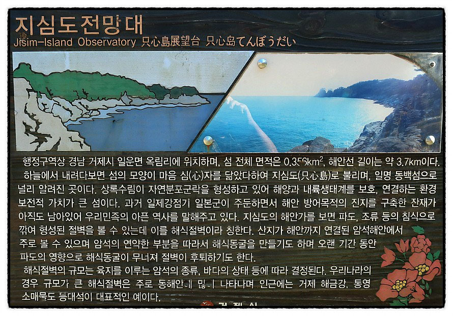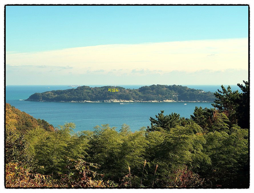['지심도' 조망] <마음 心>자를 닮았다고 붙여진 이름이라는 "지심도 只心島"가 조망됩니다. 자세한 내용은 안내문을 참고 하고