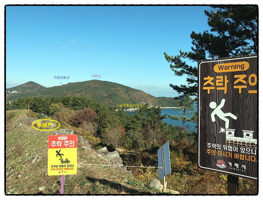 ['지세포성 동성벽'] 12:28~12:36 <지세포성>의 뒷쪽 끝인 東城壁에 오르니 지난 <남파랑길20코스>가 조망되고