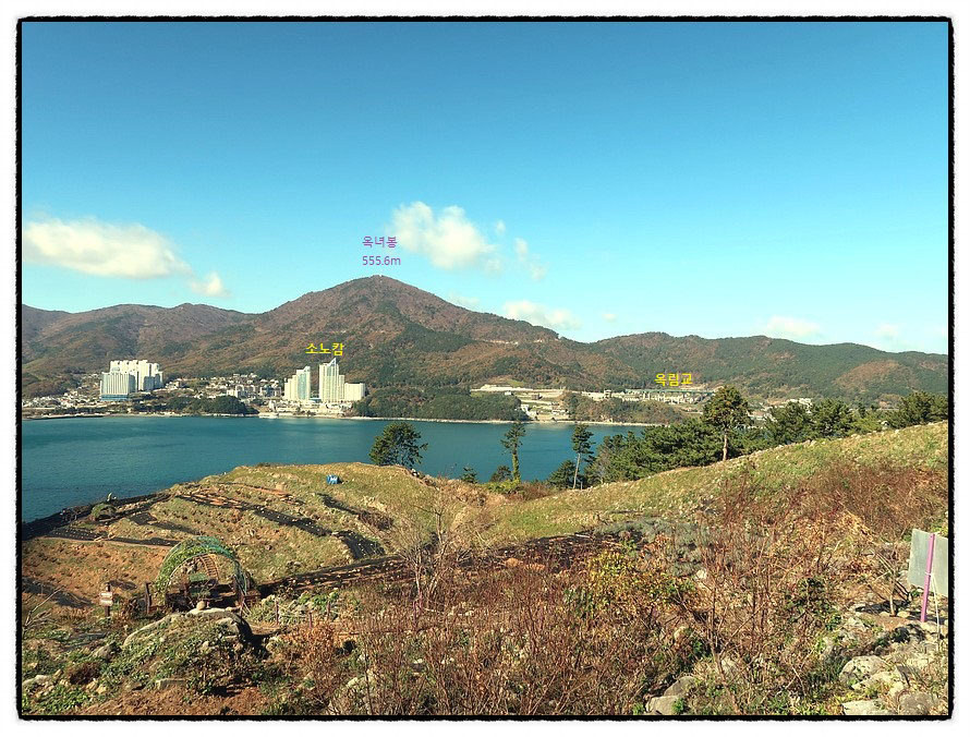 ['옥녀봉' 조망] 북쪽으로는 <소노캄리조트> 뒤로 계속 따라 다니는 <옥녀봉>이 보입니다. 좌측으로 방향을 조금 더 돌리면....
