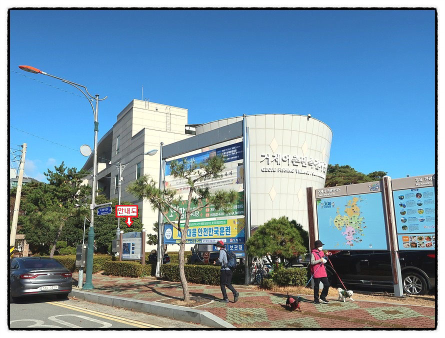 ['거제어촌민속전시관'] 11:53~11:57 2022년 11월 23일 수요일 대체로 맑음 서울에서 평시보다 30여분 빠르게 "거제어촌민속전시관"에 도착하여 도보여행을 시작합니다. <남파랑길 21코스 안내도>는 정문 좌측에 있습니다.