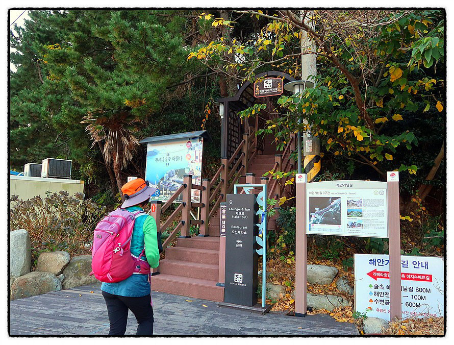 ['해안거님길' 입구] 4:19 <와현유람선 선착장>을 지나면 바로 "해안거님길" 입구를 만나고