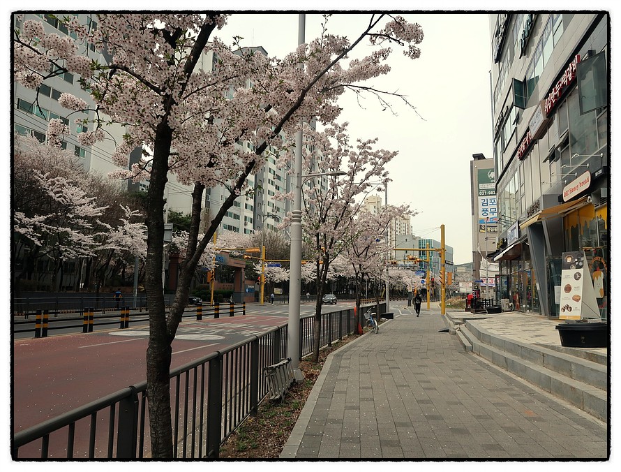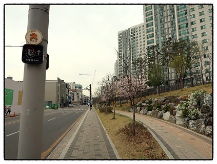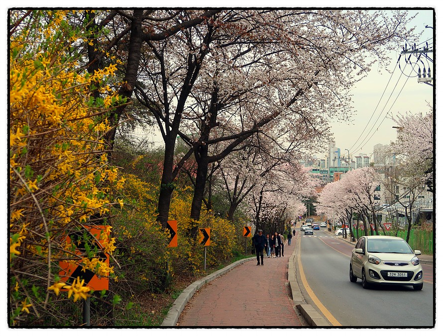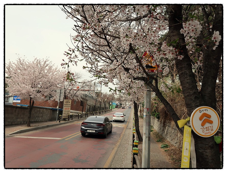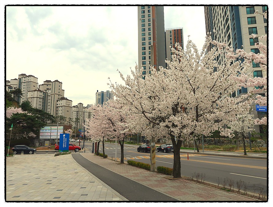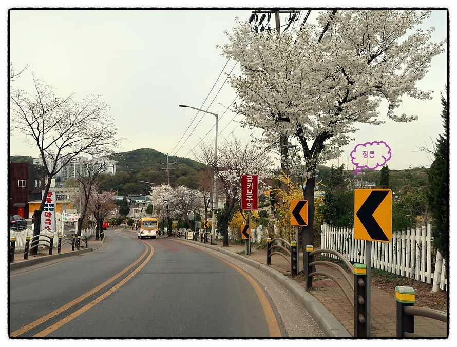['장릉'가는 고갯길] 11:21 . 신도시를 벗어나 구도시로 들어 갑니다. 벚꽃이 활짝 피어 절정을 이루고 있습니다.