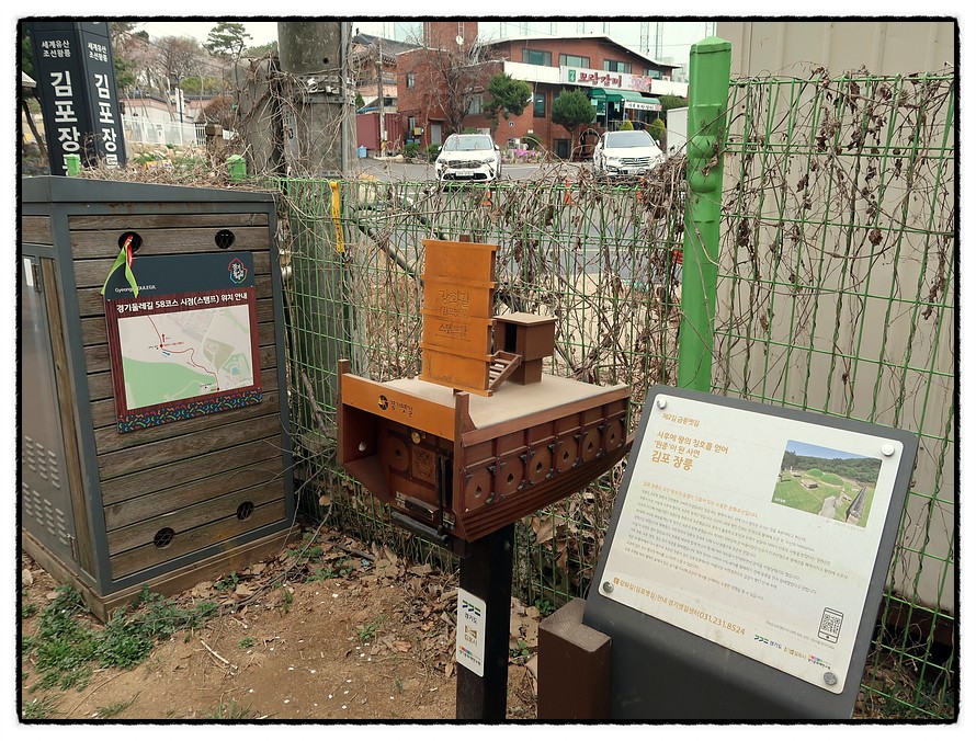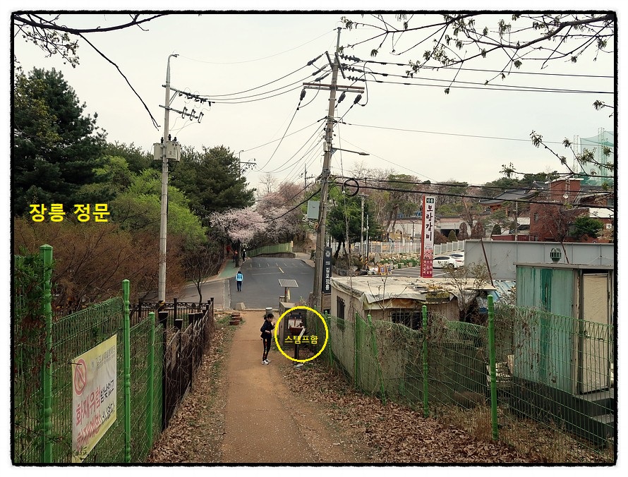 ['스탬프함'] 11:39 <장릉> 녹색 펜스가 끝나는 곳 쯤에서 <장릉> 정문을 만나기 바로 전에 <스탬프함>이 있습니다.