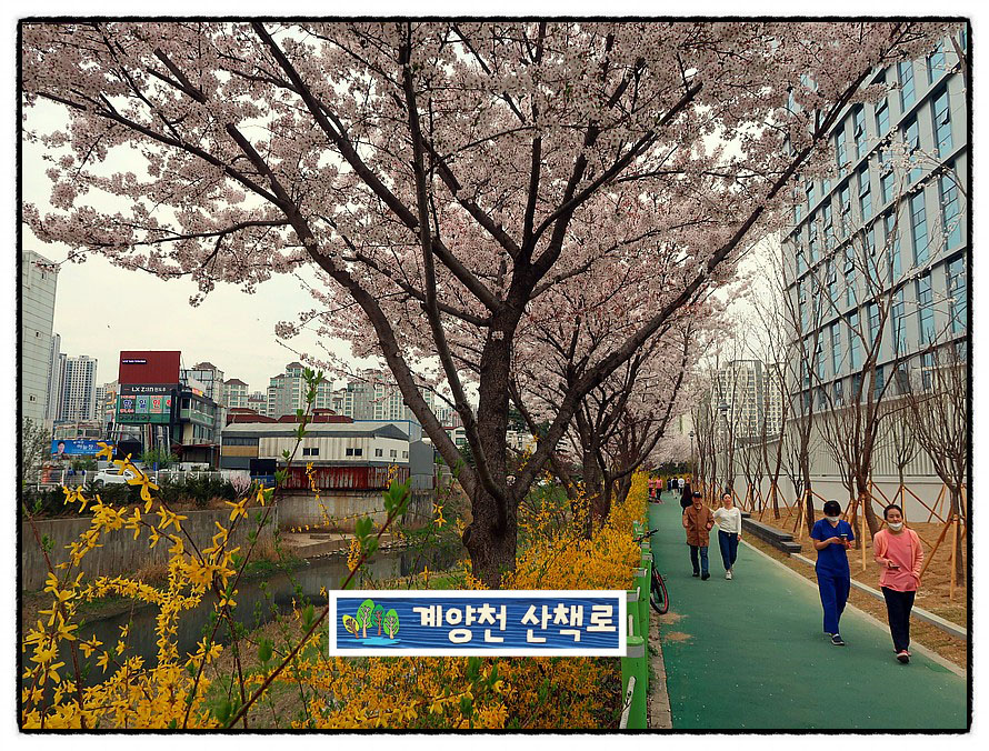 ['계양천산책로'] 이 둑방길을 <계양천산책로>라고 하더군요. 벚꽃이 최고의 날을 만들어 줍니다.