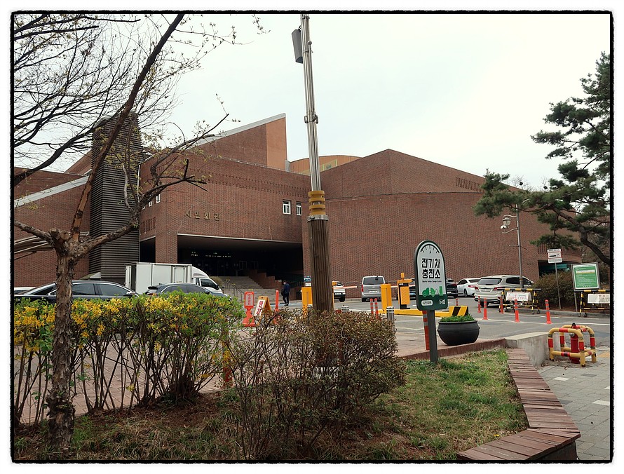 ['김포시민회관'과 '종합운동장'] <시청> 정문 앞에서 일직선으로 뻗은 도로를 따라 <사우사거리>로 가면 <김포시민회관>과 <종합운동장>이 있고