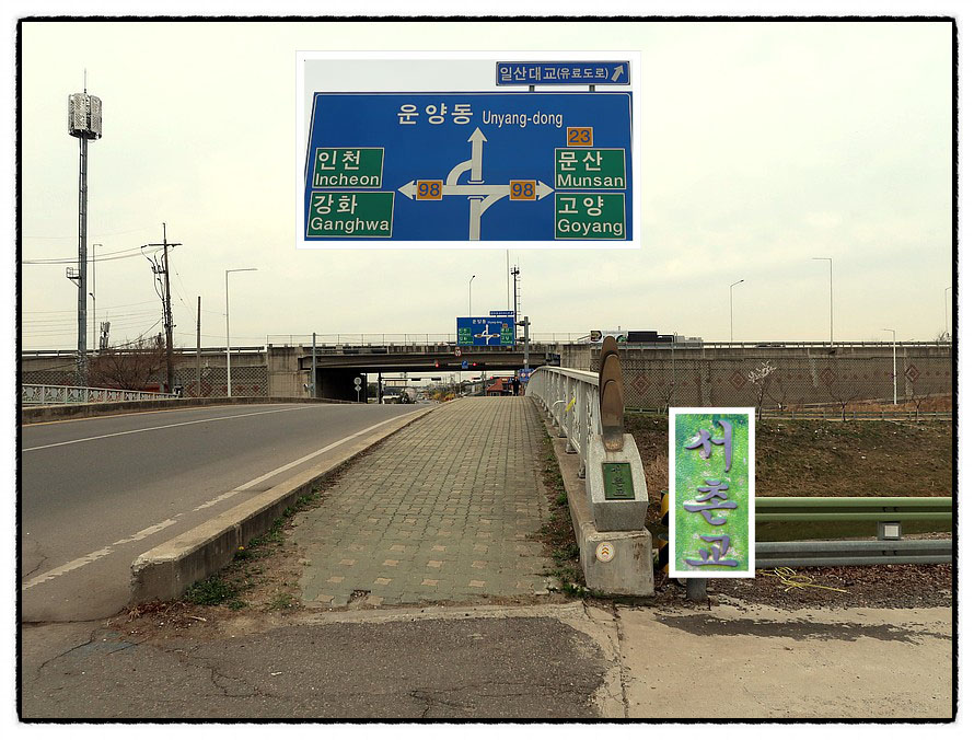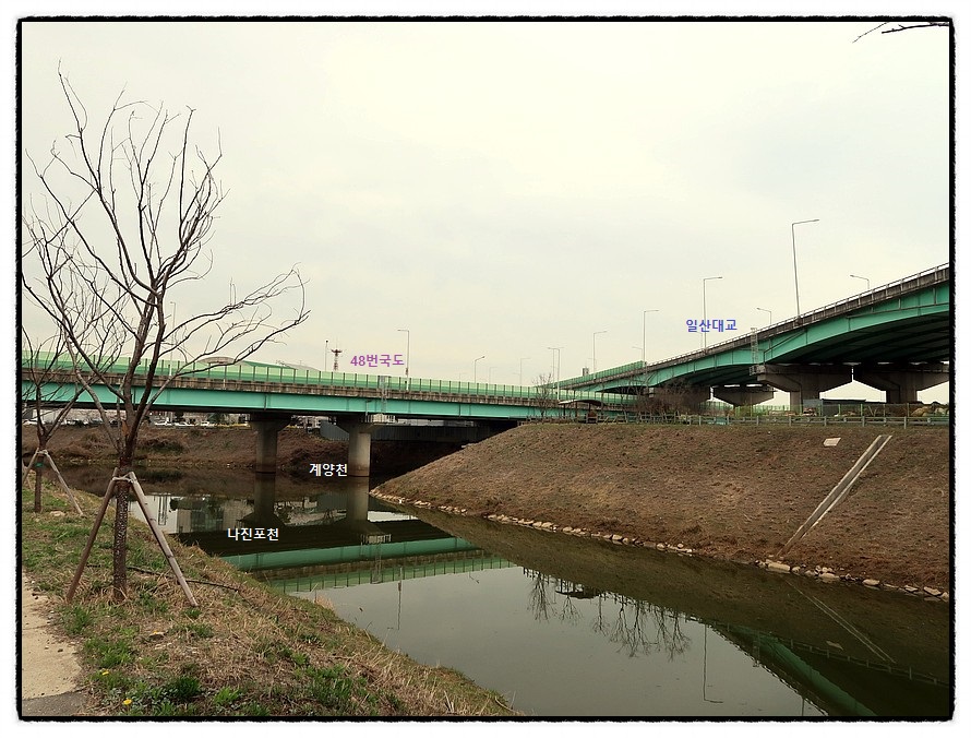 ['일산대교'] 1:43 <나진포천>이 <계양천>에 합수하는 지점을 만나는데, 이곳에 <일산대교>와 <48번국도>가 교차하며 지나고 있었습니다.