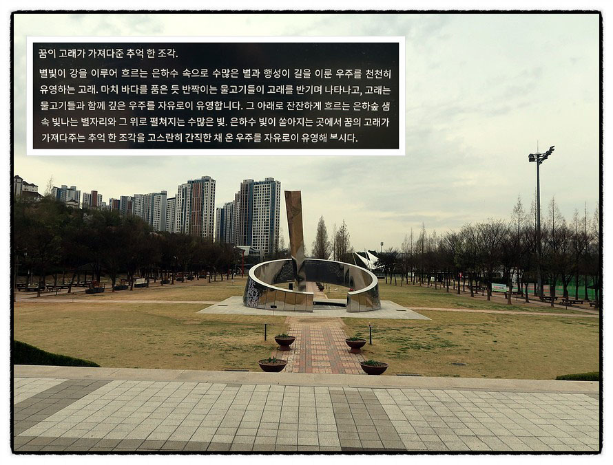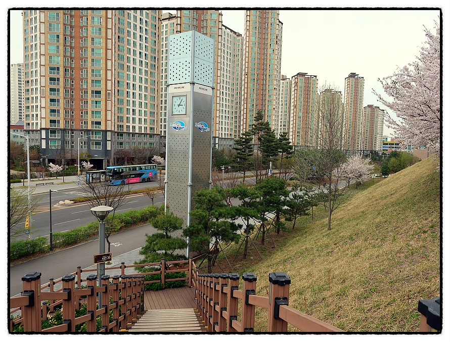 [공원 통과] 상당한 규모의 공원을 통과합니다. "걸포 傑浦" 전래 지명은 "거래" 였고 한자표기도 현재와는 다른 걸포였답니다. '걸포리'의 다른 명칭은 "걸개, 걸포펀"등이 있는데, "걸"은 '개천'의 뜻이랍니다. 이처럼 "걸애" 또는 "거래"는 <개울, 도랑>의 뜻이니까 이런 말이 지명에 쓰이면 "개울이 있는 마을"의 뜻이 되는것이랍니다. 현재는 신도시로 변모하고...